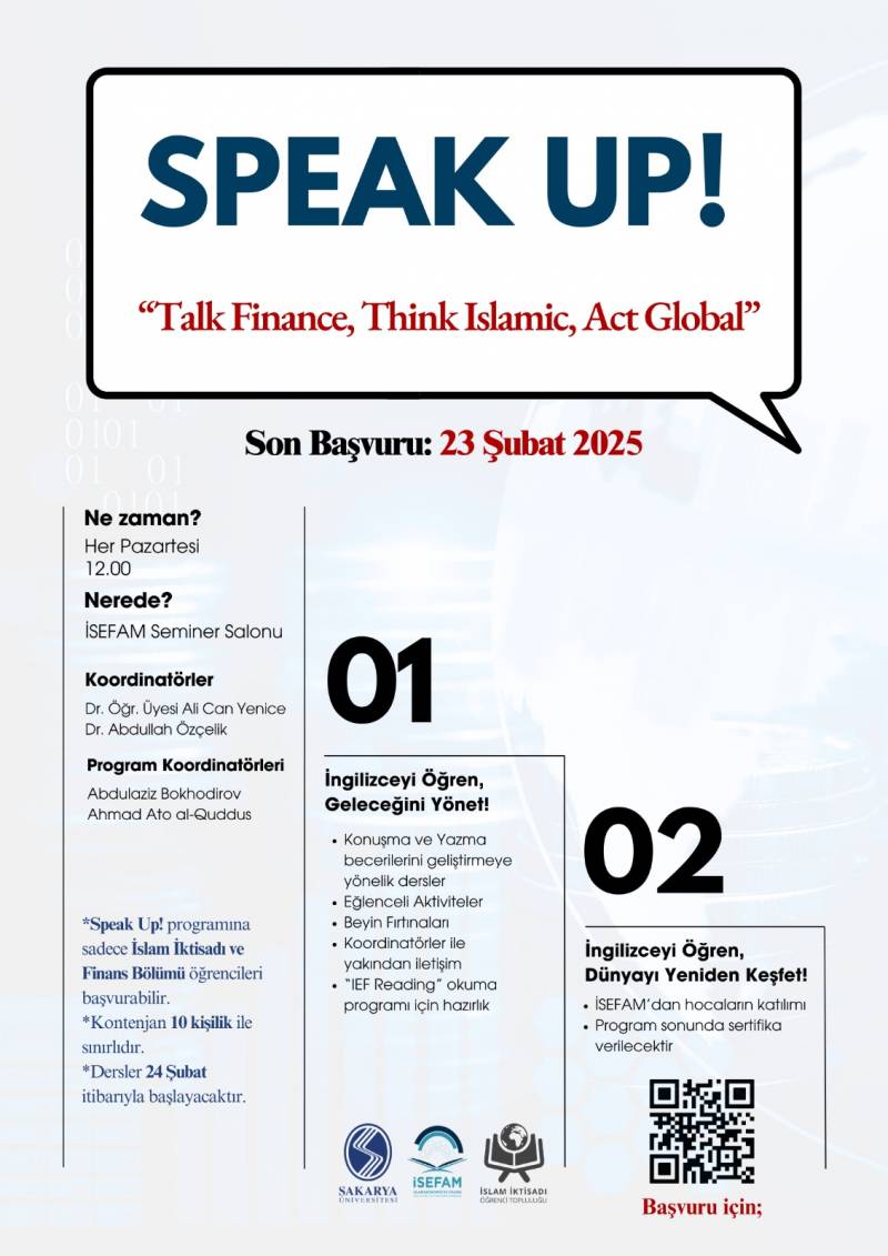 İslam İktisadı ve Finans bölümü öğrencilerinin İngilizce konuşma ve okuma-anlama becerilerini geliştirmeye yönelik olarak, merkezimiz İSEFAM tarafından iki program düzenlenmektedir.
